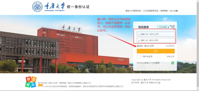 的直接输入账号/密码(学号和统一认证号的密码),点击登录