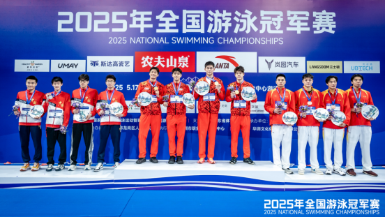 (左四赵一朴于2025年全国游泳冠军赛4×200米接力决赛中获得亚军)