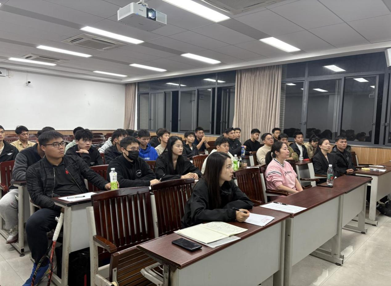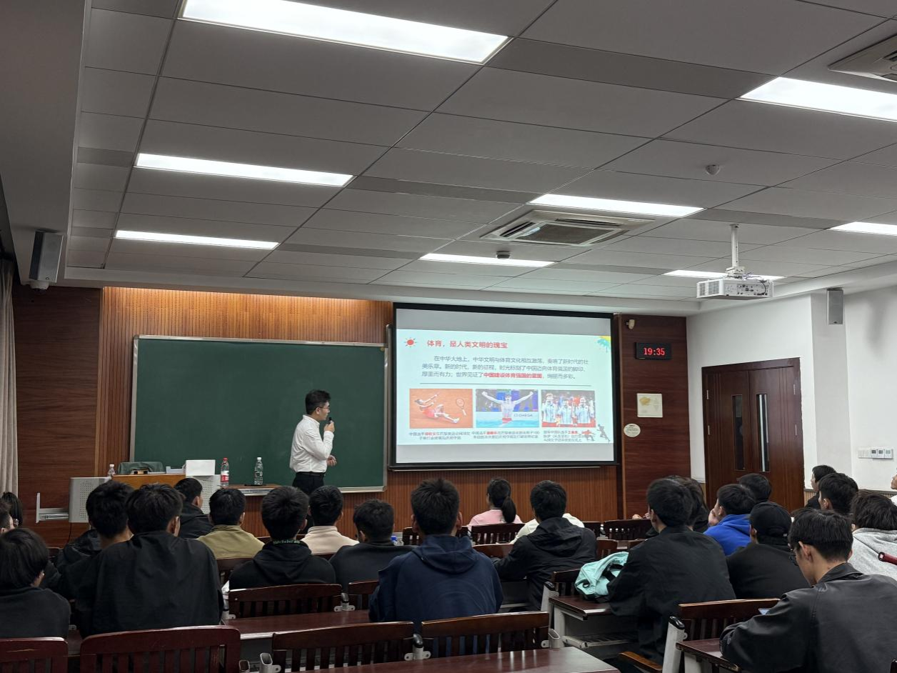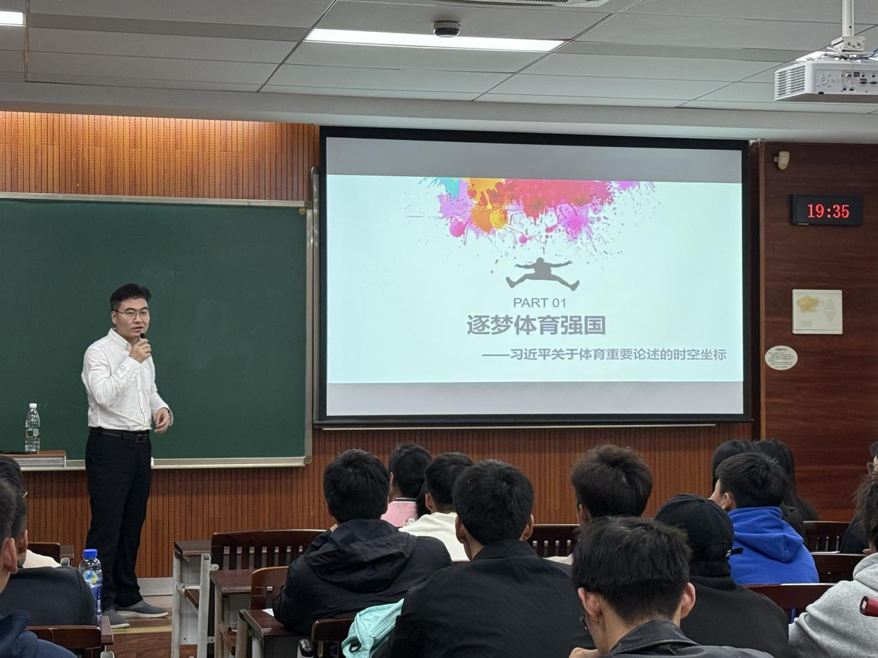 2024年10月31日19:30,虎溪校区D1349教室内灯火通明,色情影片 党委书记田辉在这里给色情影片 全体学生党员讲党课,党课主题为“习近平关于体育重要论述的时代价值与世界启示(迈向体育强国之路)”。