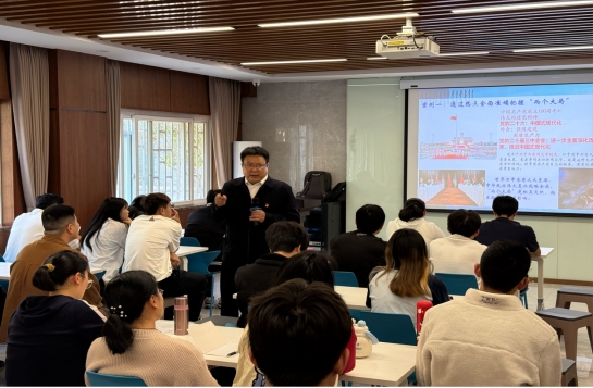 新闻学院党委书记凌晓明为全体党员作“以中国共产党人精神谱系凝聚成强大的奋进力量”主题讲座,共同感悟中国共产党人精神谱系的磅礴伟力。