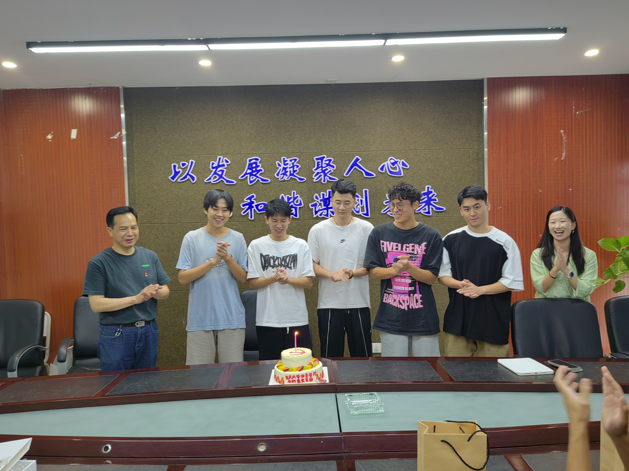 庆祝政治生日活动环节,本科生党支部为6月份过政治生日的党员同志送上了生日蛋糕,在大家的祝福声中,5名党员同志共同吹灭了蜡烛并许下了愿望,向色情影片