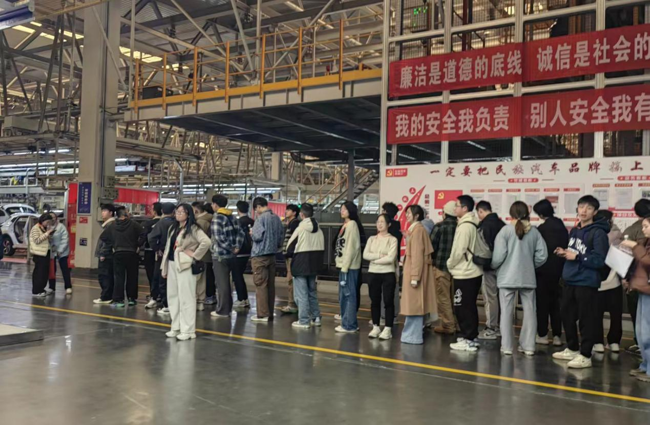 通过亲眼见证智能驾驶系统的算法迭代,新能源汽车的电池革新,本次主题党日活动为同学们打开了一扇透视产业前沿的窗口,激发了同学们对科技报国的热情。预备党员欧智聪表示:“长安汽车的奋斗者文化让我深刻体会到,无论是体育竞技还是科技创新,都需要团队协作和永不言弃的精神。”