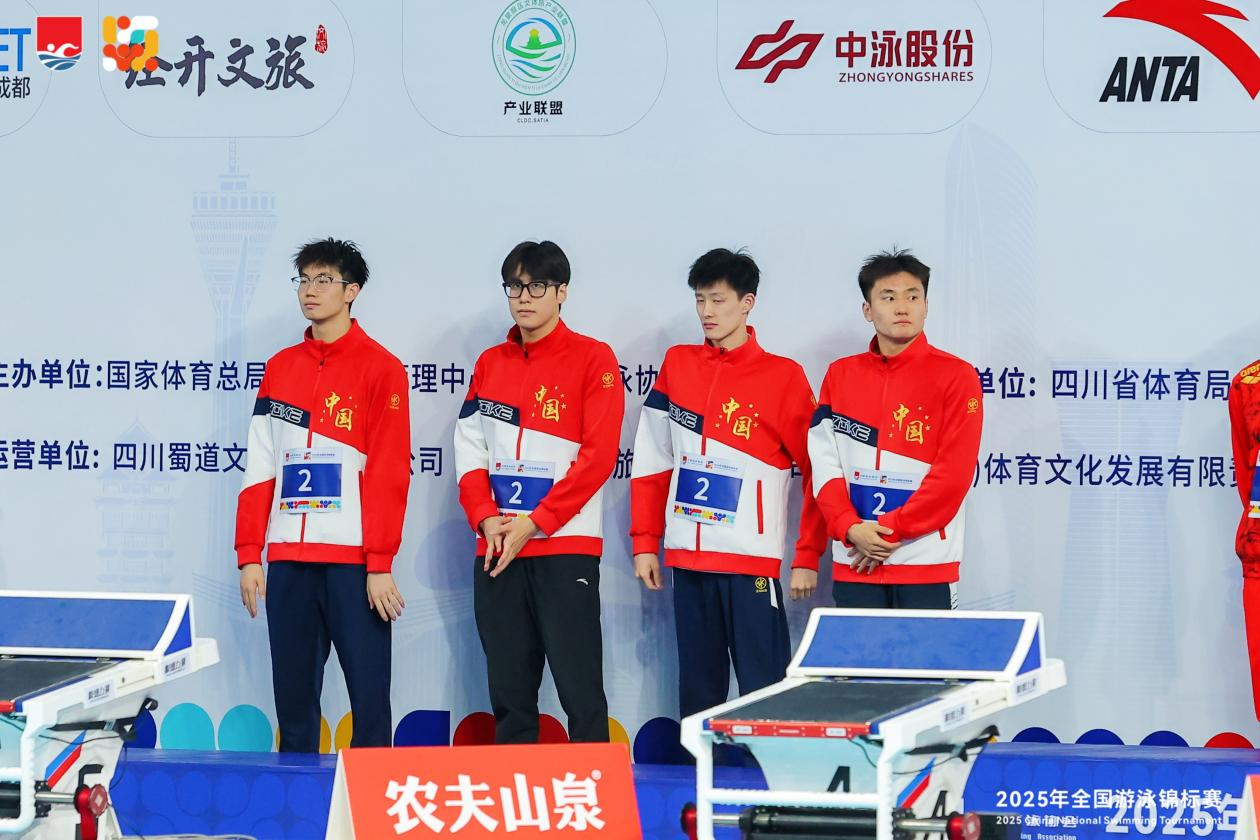 作为国内游泳领域的顶级赛事,2025 年全国游泳锦标赛汇聚了各省市区顶尖游泳选手,男子 4X200 米自由泳接力项目更是高手云集、竞争白热化。赛前,赵一朴作为学院运动训练专业首届新生,便凭借此前在男子 200 米自由泳项目中的亮眼表现备受关注;决赛中,他作为队伍关键一棒,顶住多方压力,在接棒瞬间便展现出极强的竞技状态,最终以 1 分 45 秒 66 的成绩圆满完成接力任务,助力战队摘银,这个成绩不仅超越了众多国内顶尖选手,更是成功闯入男 200 自接棒分段历史前十,与孙杨、潘展乐等一众名将同列榜单。