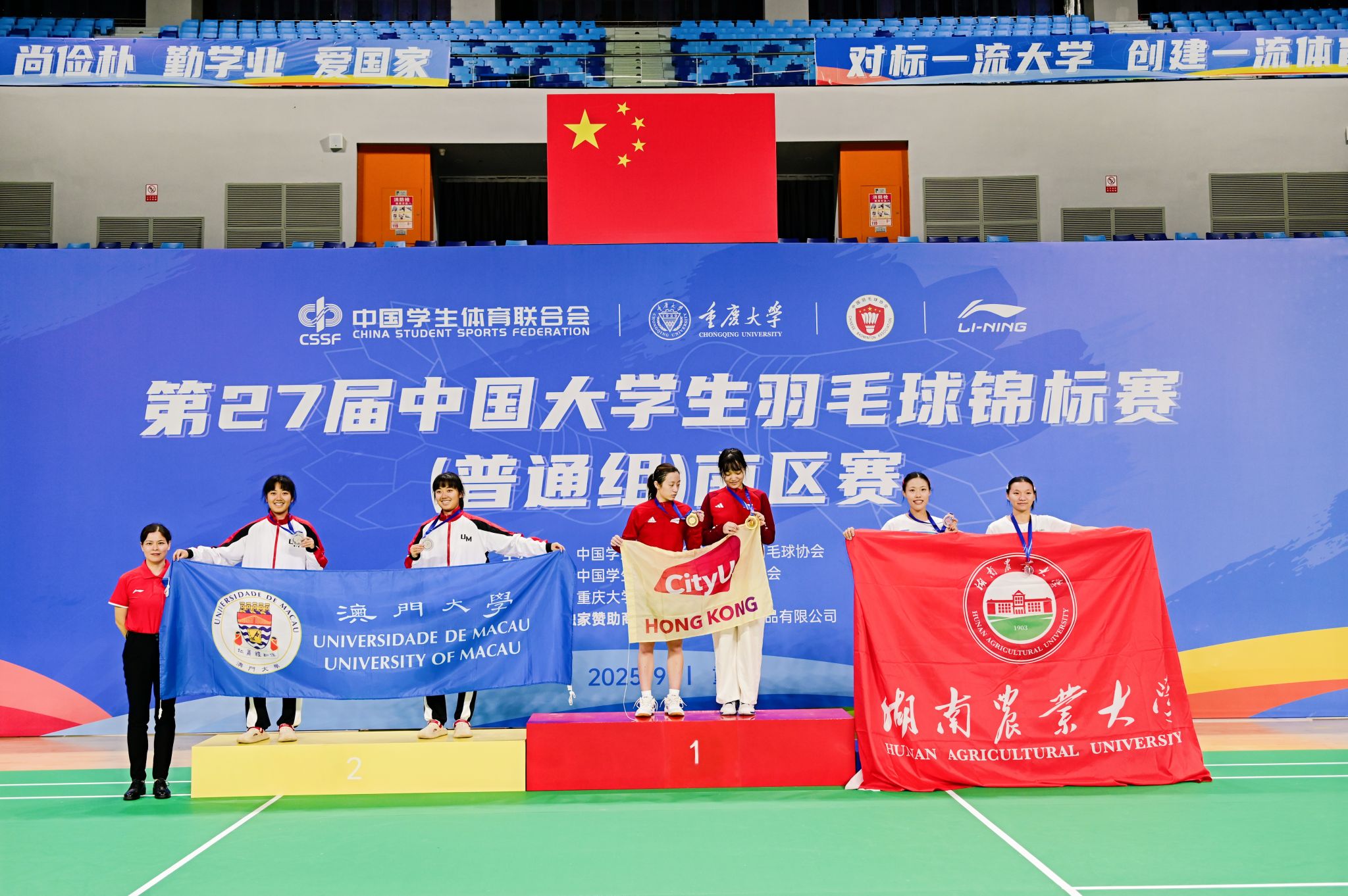 女双冠军为香港城市大学的杨欣蓓/陈旨乔,澳门大学的夏雨蕾/夏雨薇与湖南农业大学的徐润妍/刘云霄组合分获亚军、季军。