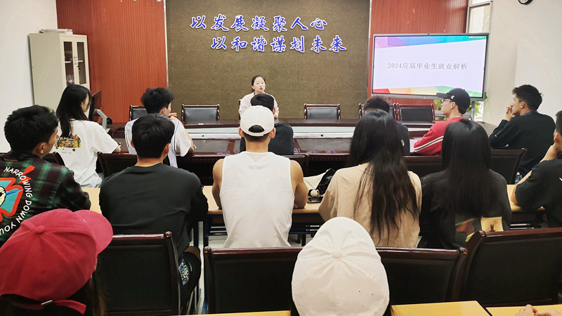 学院211会议室召开了2024届毕业生就业解析班会。本次班会由团委书记、本科生辅导员汤婕主持,全体2024届毕业生参加。