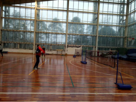 羽毛球专项队为每周早晨三练,6点四十准时到达体育馆开始训练(挥拍练习、步伐练习等)