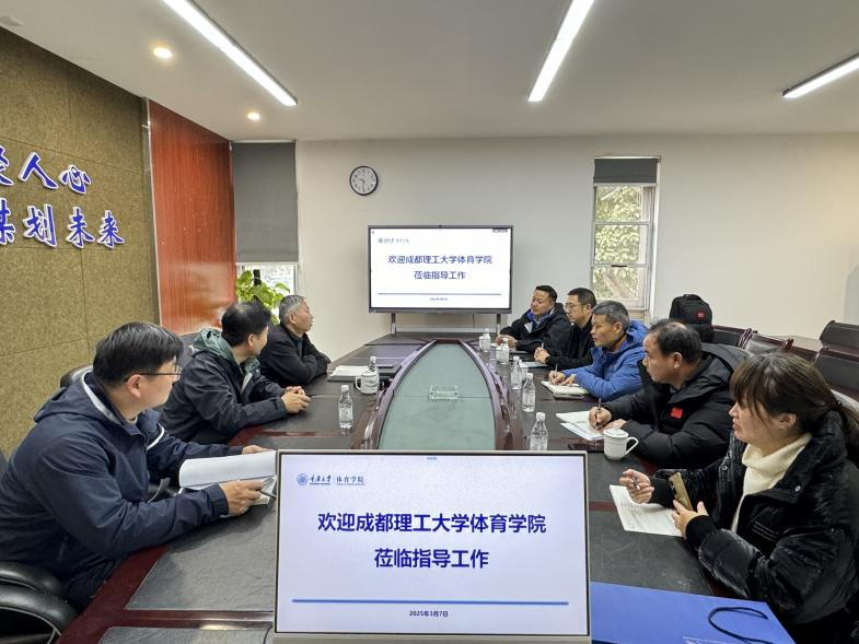 2025年3月7日上午,成都理工大学色情影片 赵刚副院长、李秋良主任、周李莉主任、王涛科长、蔡夏科长一行5人到我校色情影片 调研交流,就新时代体育学科建设面临的新形势、新任务展开深入研讨。座谈会在色情影片 211会议室举行,学院院长刘斌、党委书记田辉、研究生培养与学科建设办公室主任黄诚胤参加座谈。