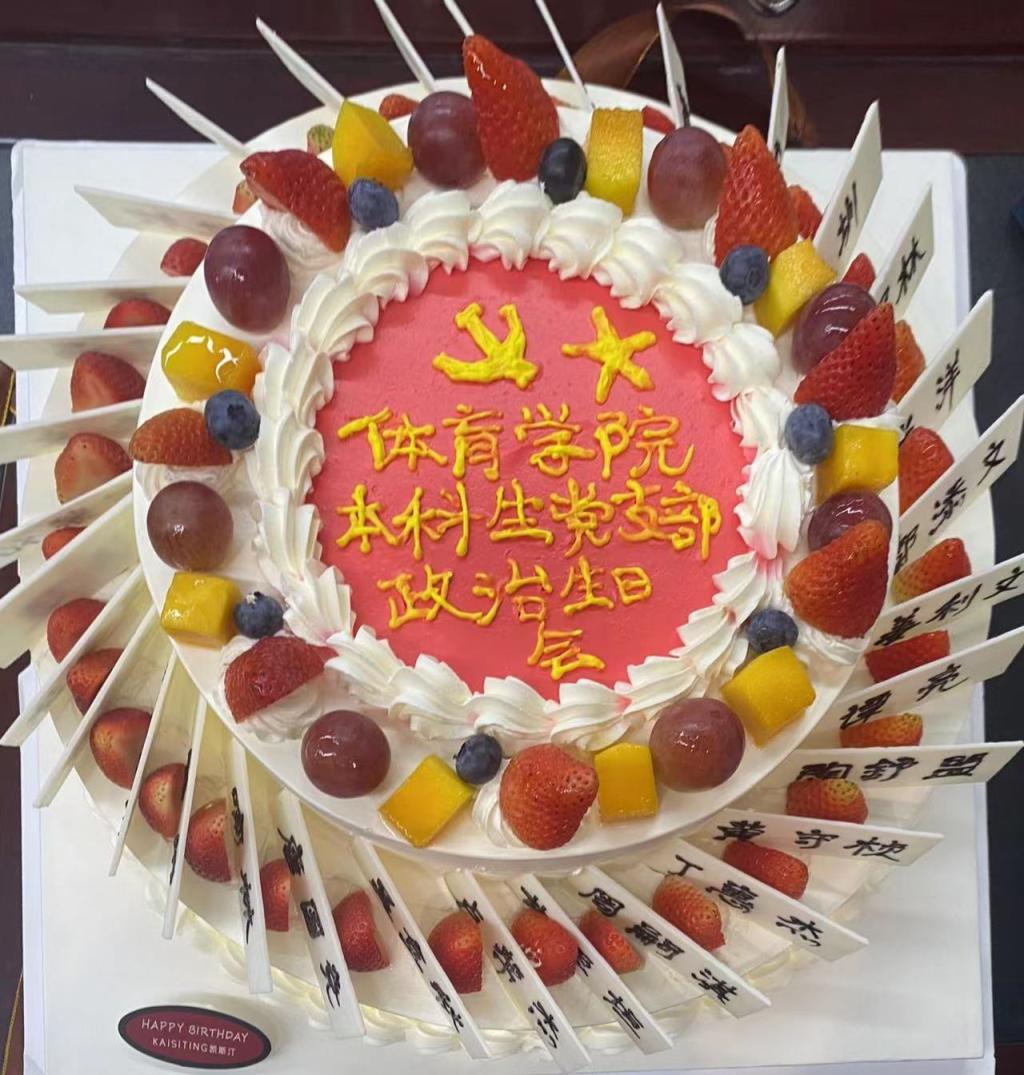 在随后的庆祝政治生日活动环节,本科生党支部为6月份过政治生日的党员同志送上了生日蛋糕,在大家齐唱国际歌的伴奏下,9名党员同志也许下了自己的心愿,同时更加坚定了作为一名中共党员,要始终坚持党的领导,用实际行动践行为人民服务的宗旨。