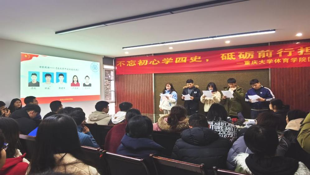 研究生党支部组织的 “不忘初心学四史,砥砺前行担使命”特色党团活动在210会议室举行。本次活动分为诗歌朗诵、“声”临其境、“知”史“明”史知识问答以及大合唱4个环节,学院全体研究生参加。