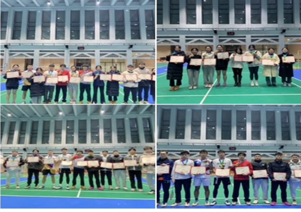 本次比赛分为男子单打、男子双打、女子双打、男子女子混合双打4个项目。比赛过程中,参赛选手们纷纷使出浑身解数,灵巧的步伐、大力扣杀、轻盈吊球,默契的配合与精彩表现层出不穷,展现了在专项领域的过硬实力,赛出了风格和水平,用行动诠释着对羽毛球运动的热爱与执着。
