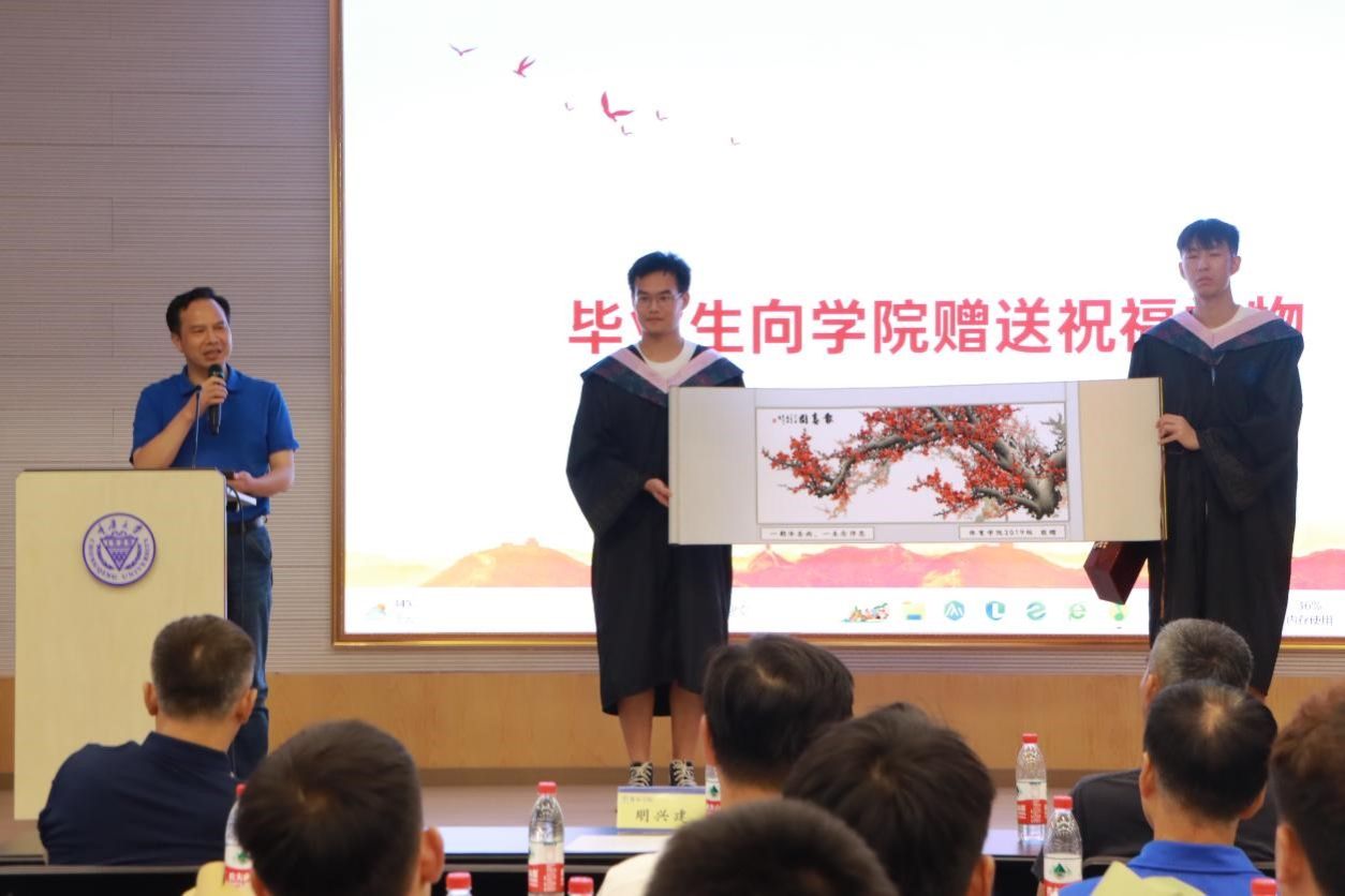 三尺讲台,桃李满天,十年树木,育人栋梁。为感谢老师们的辛苦付出,毕业生们特意准备了礼物。明兴建书记代表色情影片 接受毕业生赠送给学院的毕业礼物,并表达了对同学们的祝福:鹏程万里,各瞻迩遐壤伟业;未来可期,团聚相逢更亲切!