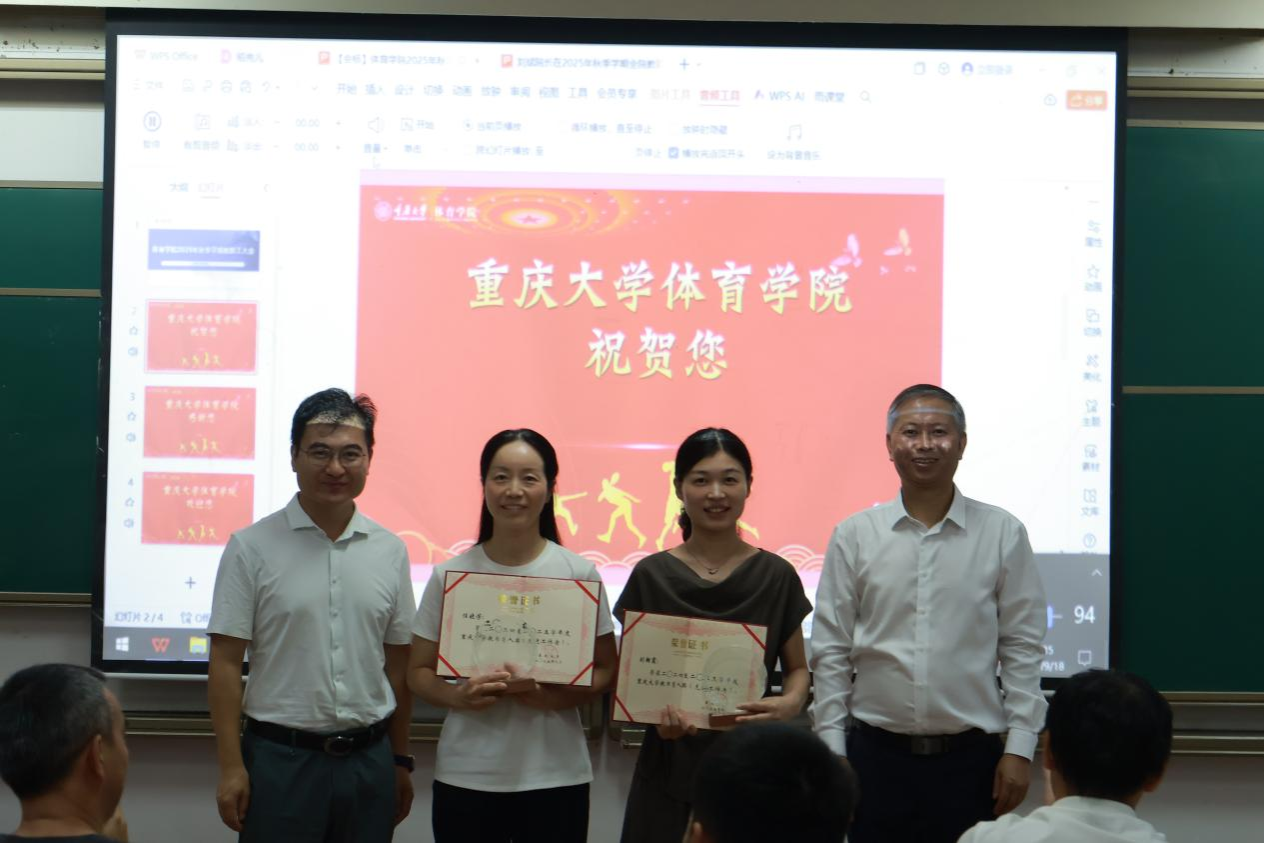 在“体院欢迎您”环节,罗浩、吴翔、李彦锦、邓梦莲、赵雨苗五位新成员集体亮相。新入职代表罗浩发言:“我们将以‘初学者’姿态扎根教学科研,为学院发展注入新鲜血液。”其发言洋溢朝气,彰显青年教师的使命担当。