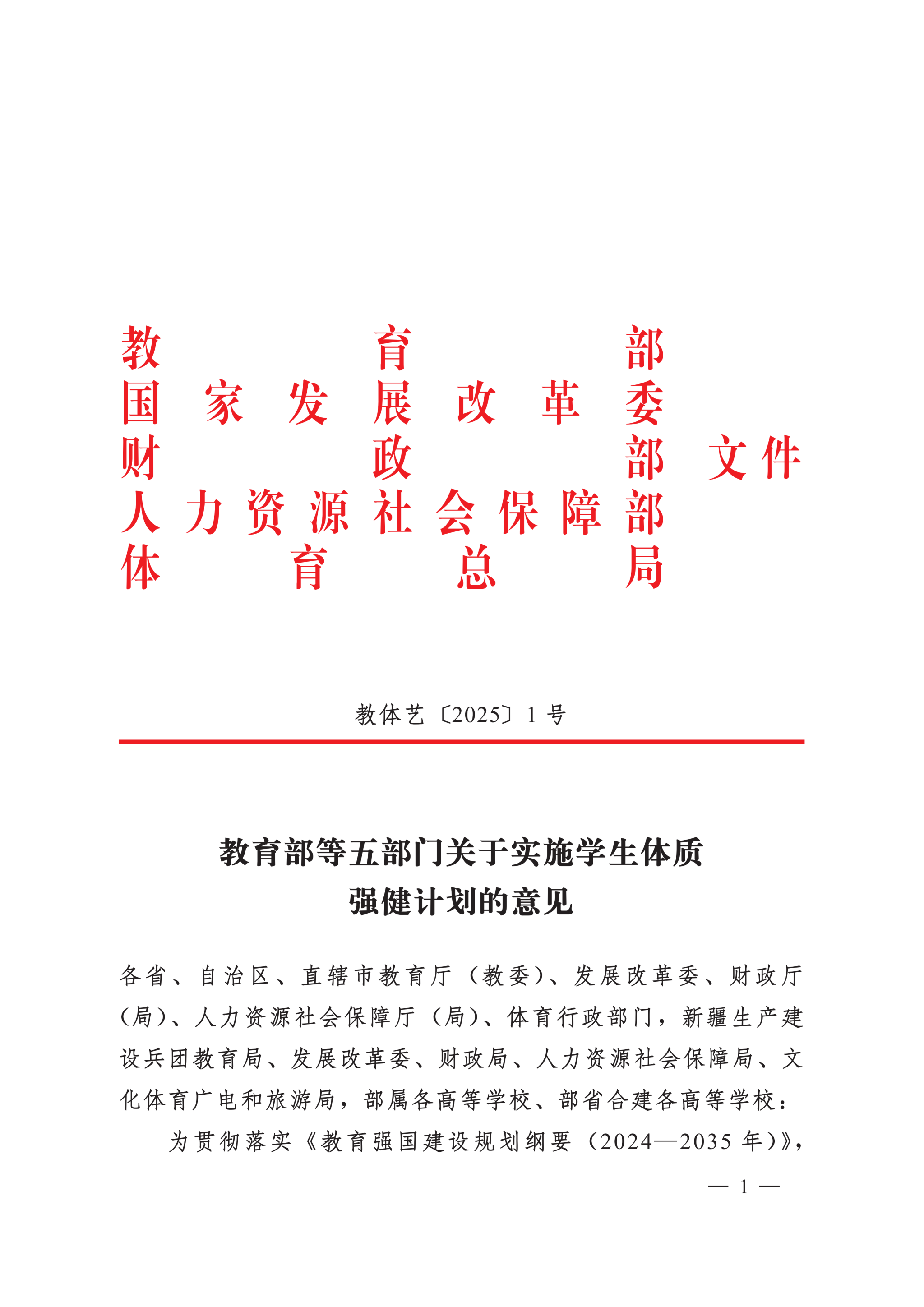 教育部等五部门关于实施学生体质强健计划的意见