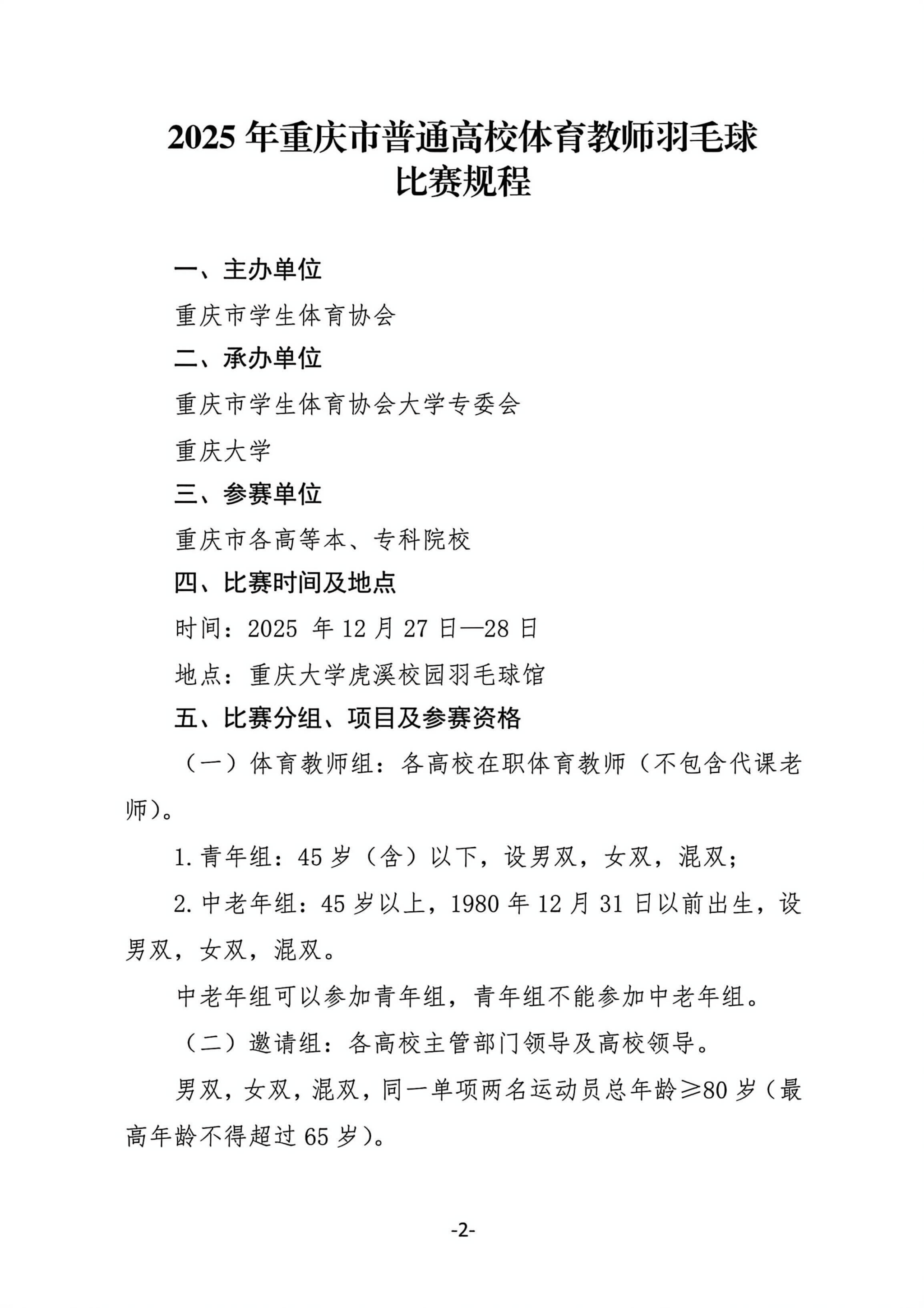 2025年重庆市普通高校体育教师羽毛球比赛