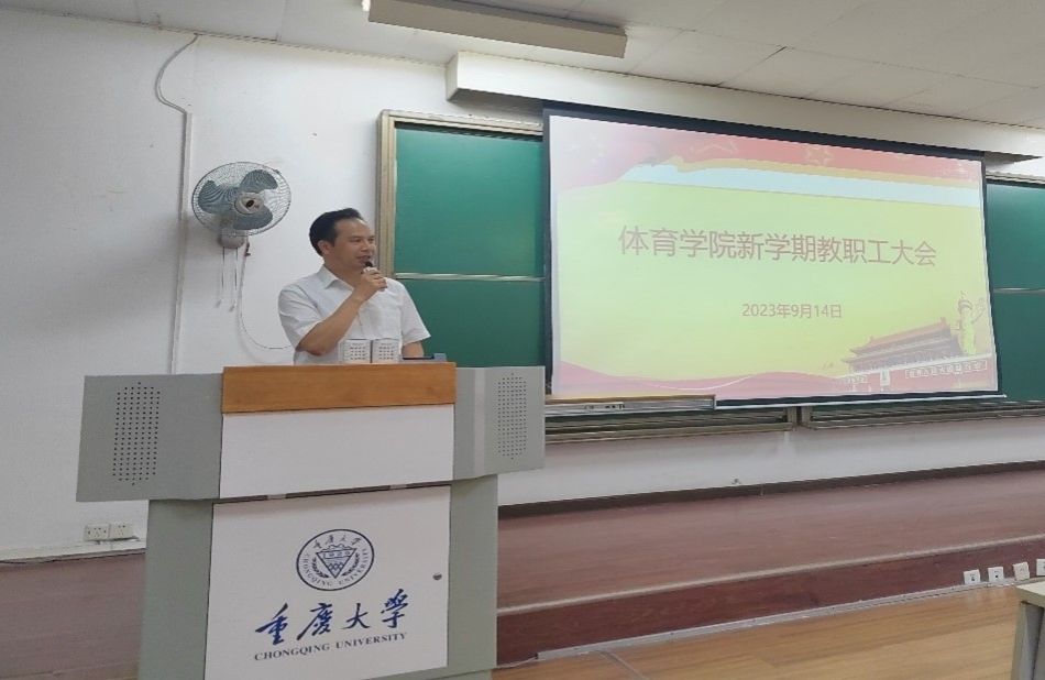 学生迎新军训、学风建设、师德师风、安全教育、困难帮扶和就业情况以及学院纪委下半年的重点工作。落云柯对学院专业定位、学科建设、教学科研、师资队伍等情况作了说明。潘建华从着力提升学生体质健康测试水平,统筹开展群体活动、推动国内合作、强化后勤保障等工作做了讲解。
