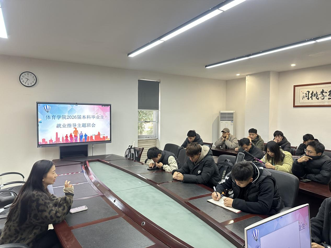 2025年11月26日上午,2026届本科毕业生就业指导主题班会在学院210会议室顺利召开。全体2026届本科毕业生参会,本科生辅导员汤婕老师主持。 班会伊始,汤婕结合当前体育行业就业形势及学院毕业生就业情况展开就业指导。她从就业政策解读、职业方向梳理、简历制作技巧、面试应对策略等多个环节进行讲解,重点分析了体育教师、运动训练指导、体育赛事运营、健身行业管理等热门就业岗位的需求特点与竞争态势。针对部分同学存在的就...